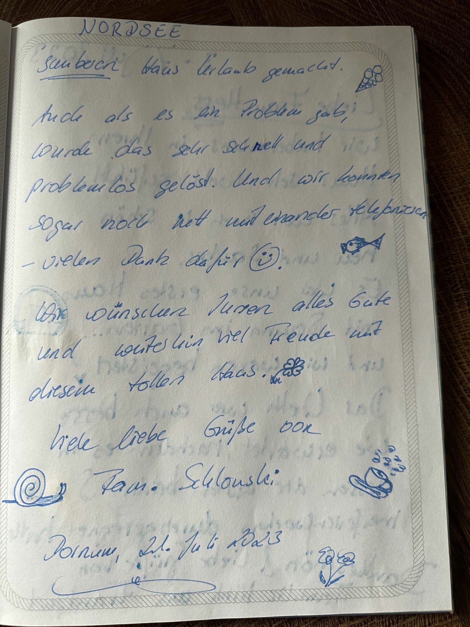 In unserem Gästebuch finden Sie ehrliche und authentische Meinungen sowie Kommentare unserer Gäste, die bereits in unserem Ferienhaus Landhaus Seewind in Dornum in Ostfriesland Urlaub gemacht haben.